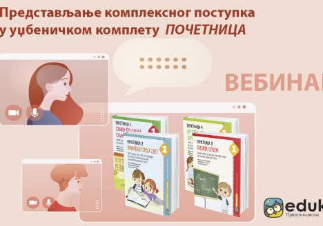 Поштоване учитељице и учитељи, Задовољство нам је да вас позовемо да за вебинар Представљање комплексног поступка у уџбеничком комплету “Почетница” за први разред основне школе одаберете један од понуђених термина и да на тај начин дођете у прилику да се информишете и да са нама поразговарате о начину на који је Едукин тим аутора и…